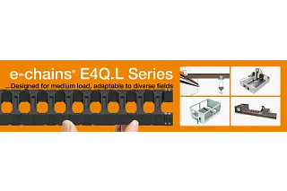 E4Q series energy chains have been developed to offer the best possible solution for unsupported and long travels. Based on the robust and proven E4.1 energy chain standard, the new range brings a long service life and a high degree of modularity.