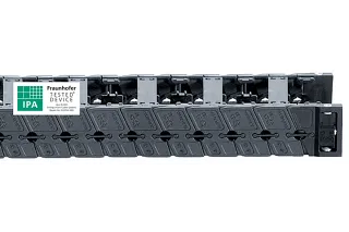 In addition to its long service life, the E6 system offers numerous other advantages. For example, it is characterised by extremely quiet, low-vibration running - making it a good match for the low-vibration drive concept of the linear motor. The so-called polygon effect, which can occur when an energy supply unwinds, is reduced to a minimum. The extremely low noise level is confirmed in an expert report by TÜV Immissionsschutz und Energiesysteme GmbH.