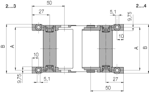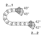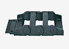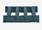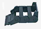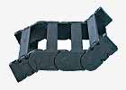 Gleitführungselemente Auto-Glide für die Serie 200. Alle 1000 bis 2000 mm werden spezielle Gleitführungselemente aus Kunststoff seitlich am Kettenglied angebracht. Sie sorgen für die exakte seitliche Führung und ein sauberes Gleiten der e-kette®.