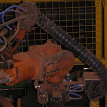 Tight twisting and torsion motions occur specifically on the robot head. In this case, the triflex® R limits the twisting of cables with the defined torsion stop, and distributes the twisting over a greater length. This increases the service life of hoses and cables.
