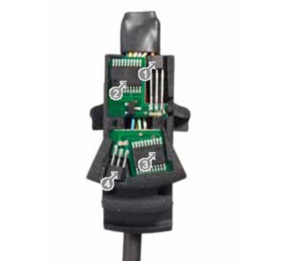 Magnetic incremental angle sensors. The sensors have a resolution of ~0.07° per axis. All sensor units are ready to install for the respective joints Each with 3 m sensor cable (6 leads for each DOF)